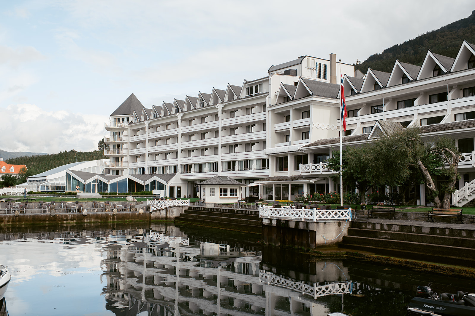 The hotel’s tower has rooms used for intimate wedding ceremonies with panoramic views. It is also the plan B if the weather turns. Weather shifts at the fjord come quickly and the hotel has the routine to move a ceremony indoors at short notice.