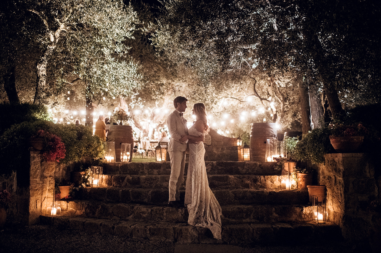 Tuscany is where most couples start looking, and for good reason. The landscape between Florence and Siena, the Val d’Orcia with its cypress-lined roads, and smaller hilltop towns like Cortona and San Gimignano have been photographed so often they feel familiar before you ever visit. Venues run from modest agriturismos with ten rooms to full borgo rentals that sleep a hundred guests. Expect olive trees, stone walls, long tables outside, and a September light that makes everything look like painted film. Tuscany is the most photographed wedding region in Italy, and the infrastructure for international weddings is well established.